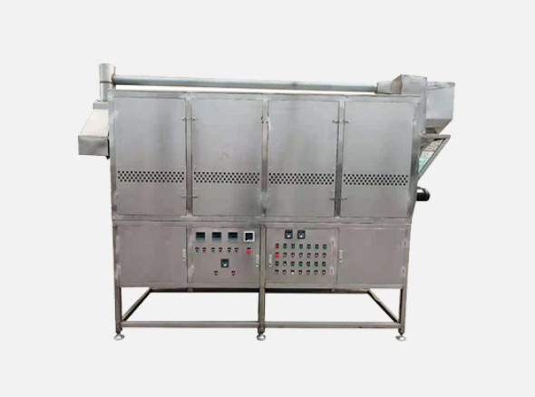 將板栗送入碳化爐中,在高溫狀態(tài)下,經(jīng)1000度高溫碳化,再經(jīng)螺旋推進(jìn)器送入搓皮機(jī)進(jìn)行殼、仁分離。每小時(shí)可碳化加工燕山山脈板栗550公斤左右 規(guī)格: 長(zhǎng)3.7米 寬1.1米 高2.45米