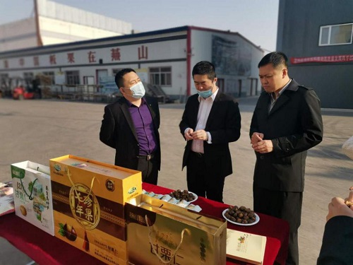 考察團(tuán)參觀我司產(chǎn)品展臺(tái),在品嘗了現(xiàn)烤制的開口笑板栗產(chǎn)品之后,對(duì)香甜軟糯的板栗產(chǎn)品贊不絕口。